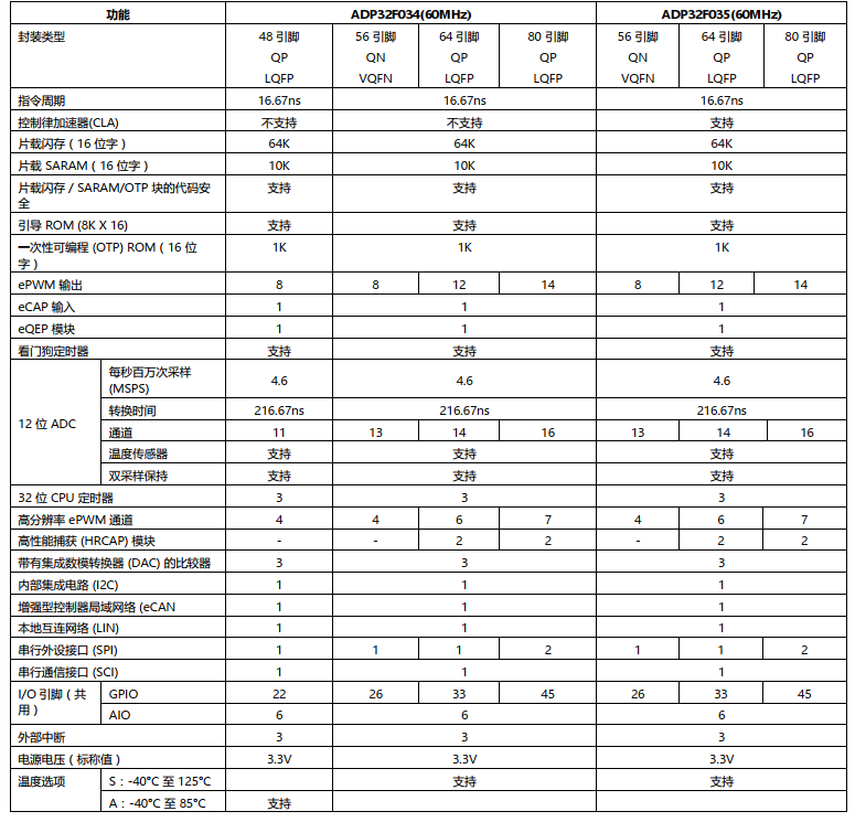 ADP32F03X DSP系列是进芯电子定点DSP平台上的最新产品,基于ADP32Fx的控制器具有与现有ADP32FxMCU一样的32位定点架构。它是一款非常高效的C/C++引擎,此引擎不但能够让用户能够用高级语言开发他们的控制系统软件,还能够使用C/C++开发数学算法。此器件在处理DSP算术任务时与处理系统控制任务时同样有效,而系统控制任务通常由微控制器器件处理。这样的效率在很多系统中省却了对第二个处理器的需要。32x32位MAC功能和它的64位处理能力,使得该器件能够有效处理较高数字分辨率问题。器件内部带有关键寄存器自动环境保存的快速中断响应,使得器件能够用最小的延迟处理很多异步事件。此器件还有一个具有流水线式存储器访问的8级深度受保护流水线。这个流水线式操作使得该器件能够在不需要使用昂贵的高速存储器就可高速执行指令。特别分支超前硬件大大减少了条件不连续而带来的延迟。特殊存储条件操作进一步提升了性能。